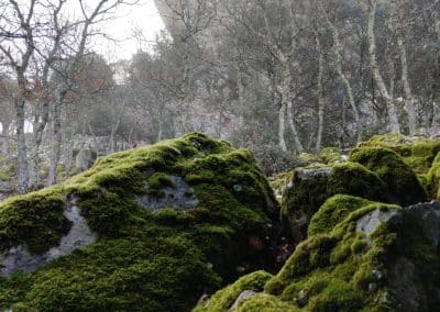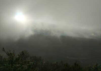 Caminar entre la bruma y ver aparecer ante ti un farallón cuarcítico, discernir las siluetas de los buitres en lo alto del roquedal, disfrutar de las vistas de los valles y de los pequeños detalles, como las flores del madroño.